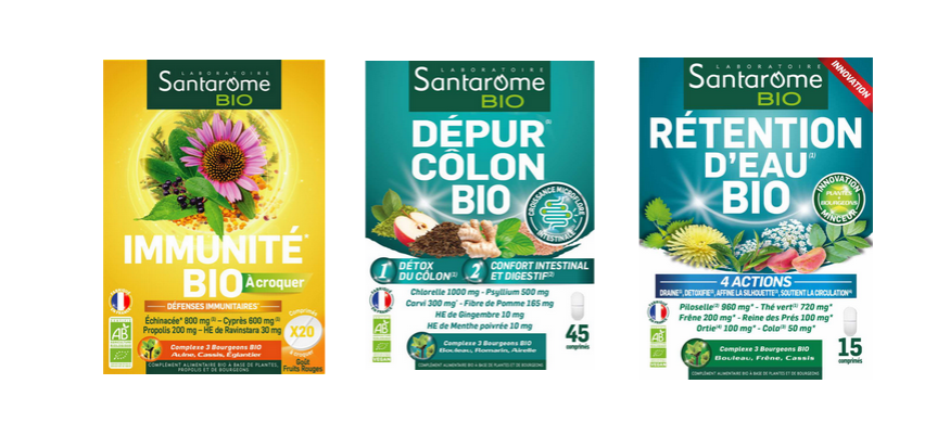 Rappels produits: DEPUR COLON BIO 45 comprimés (lot SCDC002, SCDC003), RETENTION D'EAU BIO 15 comprimés (lot SCRE001, SCRE002) et IMMUNITE BIO à croquer (lot SCIM002), de la marque SANTAROME BIO présentent une teneur d'Oxyde d'éthylène supérieure à la réglementation européenne en vigueur.